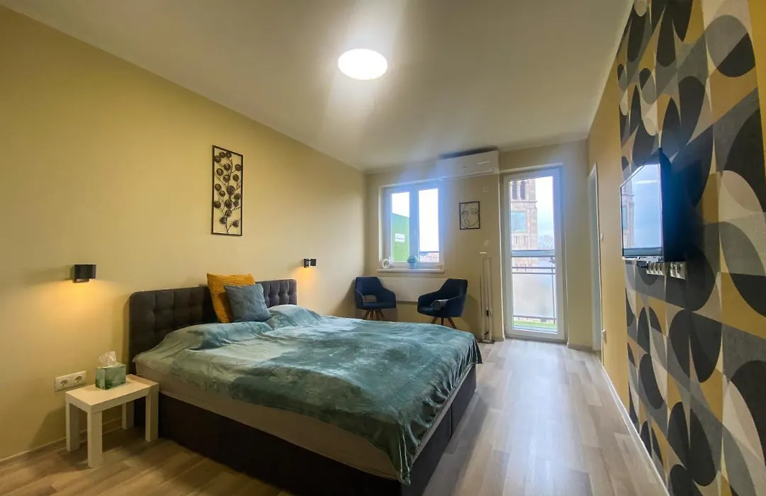 The apartment overlooks the city and comprises a balcony, a seating area, and a kitchen with climate control. At Fresh Smartly Designed Studio Flat & Sunny Balcony, a separate toilet are provided to improve your comfort. Hair dryers and bath sheets are also included in the bathroom.